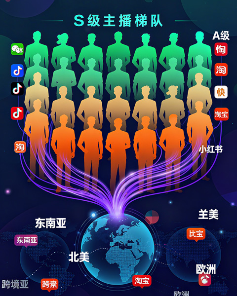 奥腾甄选精准主播矩阵!多渠道端:200 + 主播(30+S 级、80+A 级)覆盖微信 / 抖快 / 淘宝 / 小红书,各渠道主播适配专属能力;跨境端:50 + 双语主播深耕东南亚 / 北美 / 欧洲;更有三阶孵化体系培训,助力商家适配全渠道与跨境场景,高效带货!